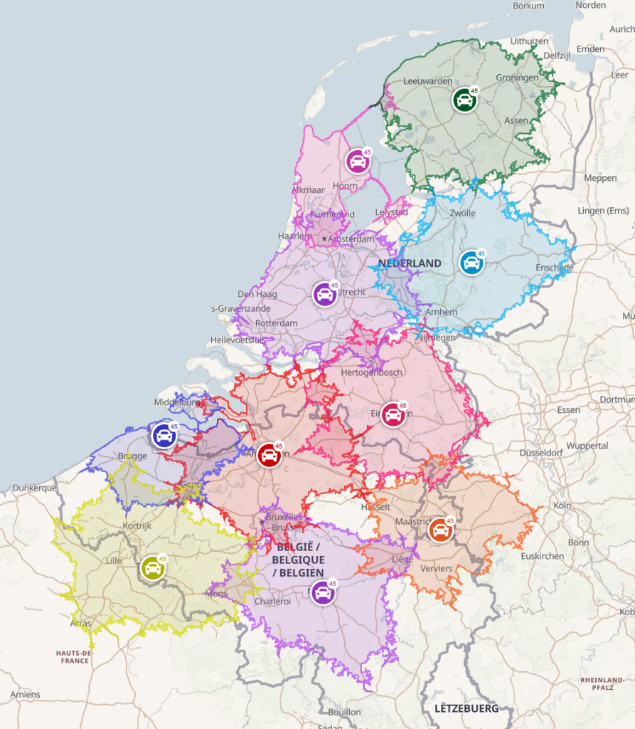 Er is geprobeerd zo veel mogelijk geprobeerd logische regio’s te vormen, mét onder andere de restrictie van maximaal 10 kanalen, herkenbaarheid en een maximale reistijd van ongeveer 45 minuten met de auto.